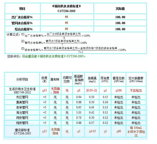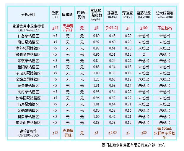 2025年10月厦门市政水务给水水质公告