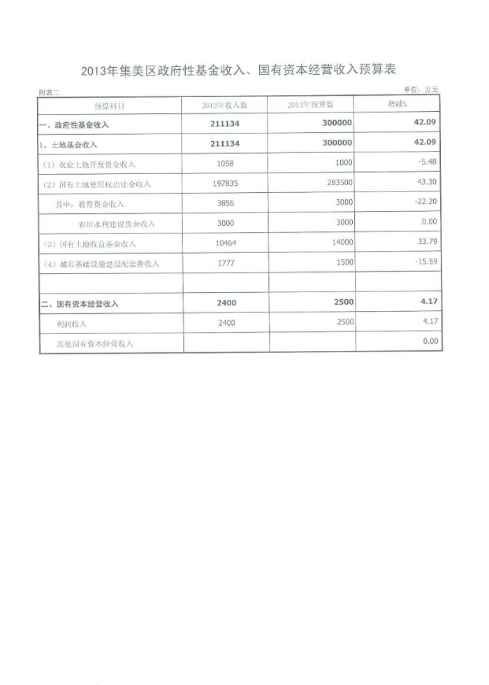 全区政府性基金收入预算300000万元,主要是国有土地使用权出让收入。政府性基金收入加上调入从城建税中计提水利建设资金3488万元后,当年可供安排财力303488万元。相应安排支出预算303488万元。当年政府性基金预算收支平衡。全区政府性基金收支预算均为区本级。