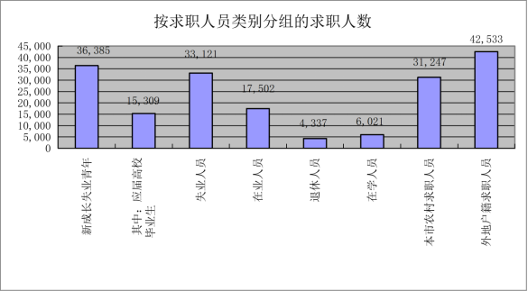 从求职人员类别上看,应届高校毕业生占求职总人数比重为8.94%,较上季度上升0.3个百分点,较去年同期下降0.42个百分点,占新成长失业青年求职数的42.08%。
