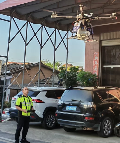 图:许建知操作无人机开展平安建设宣传。