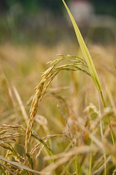 图二:田头村水稻成熟,金黄的稻穗在微风中摇曳。