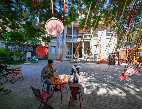 图二:在网红咖啡厅“时光花园”里,游客慢饮细品。