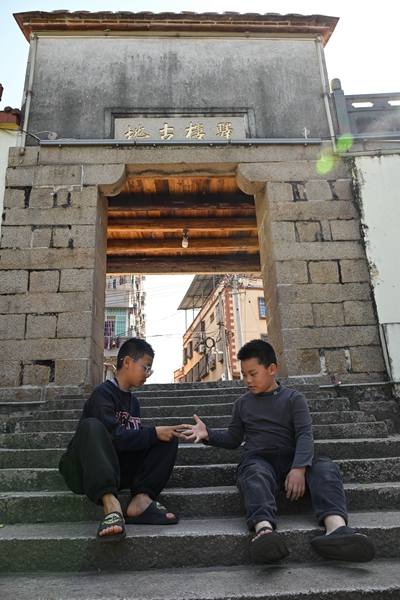 图三:小朋友在驿站门楼前玩耍。