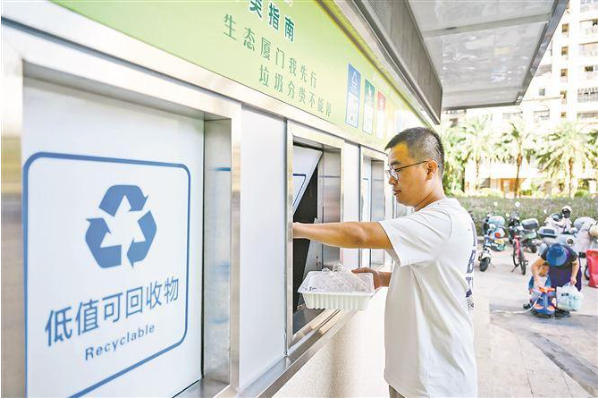 近年来,厦门市聚焦低值可回收物“价值低、收运混、处置散”痛点,从源头分类的全民动员,到处置环节的科技赋能,再到以碳交易为垃圾分类价值破局,构建起“减量化、资源化、无害化”三位一体的低值可回收物全链条治理体系。自2022年底全国首个低值可回收物分拣中心在厦落地,截至今年9月底,全市累计处理低值可回收物约4.79万吨,助力减排8.18万吨二氧化碳,约等于节约石油5.38万吨;低值可回收物回收利用模式入选联合国气候变化大会优秀案例,获生态环境部发文推广,全国首宗居民社区低值可回收物分类碳减排量交易在厦门成功完成,为“双碳”目标下的基层环境治理提供了可复制、可推广的路径,也为全国低值可回收物资源化利用树立起标杆。