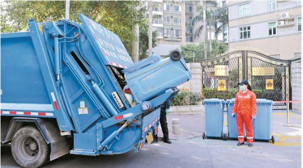 可回收物由专车收运,蓝桶和蓝车精准对接。(市环卫中心 供图)
