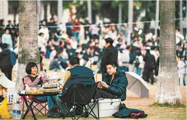环岛路椰风寨的海浪声、五缘湾湿地公园的粼粼波光、十里长堤的清风暖阳……元旦假期临近,越来越多市民游客选择以“微度假”的方式走进自然:在山海之间搭起帐篷、架起桌椅,闲坐畅谈,尽享悠闲时光。